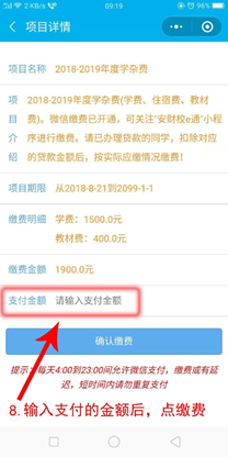 请按照各专业的缴费标准和要求办理相关手续。请务必于报到日前将第1学年学费通微信安财校e通小程序缴纳。我校缴费内容除学费之外无书本费等其他任何费用。