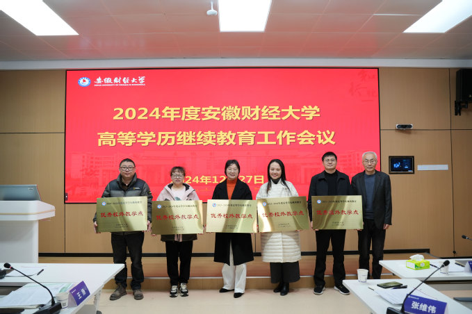 顾鸿宣读了学校2023-2024年度高等学历继续教育优秀教学点和先进个人获奖名单,学院领导为获奖的先进单位和个人颁发了奖牌和证书。