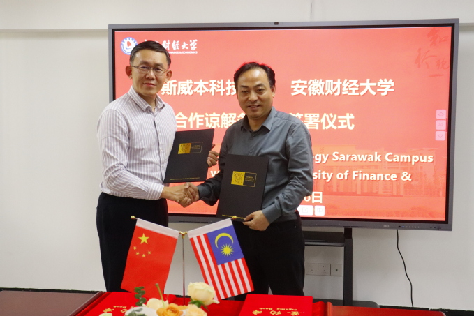 ; ;5月16日下午,我校与澳大利亚斯威本科技大学合作谅解备忘录(MOU)签署仪式在海外教育中心会议室举行。我校党委常委、副校长王兵,澳大利亚斯威本科技大学砂捞越校区国际合作与交流处处长何国才(James Ho Kok Chai)、助理黄小瑛(Veronica Vong Siao Ing),继续教育学院院长王浩,以及学院办公室、海外教育服务中心等部门负责人出席了本次协议签署仪式。