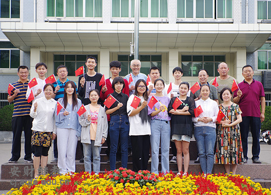 活动最后,参加活动的学院教职工和留学预科班学生在国旗下集体合影。