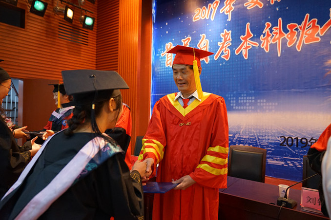 9月21日下午,我校在安徽财贸职业学院举行2019届高等教育自学考试本科毕业生学士学位授予仪式。校党委书记、校长丁忠明等领导为学位获得者拨正流苏并颁发学位证书。继续教育学院院长张治理、安徽财贸职业学院院长刘银国、副院长胡戴新等参加仪式。刘银国主持仪式。张治理宣读了《关于授予2018届高等教育自学考试本科毕业生学士学位的决定》。