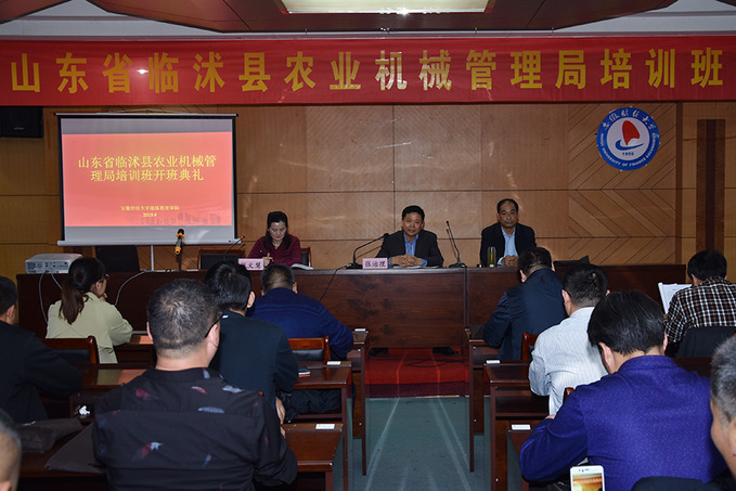 4月8日下午,安徽财经大学山东省临沭县农业机械管理培训班开班典礼在我校西校区小学术报告厅举行。我校继续教育学院院长张治理、自考培训班服务中心主任张文慧、临沭县农机中心主任文学军出席了本次开班典礼。开班典礼由张文慧主持。本次培训班共有40名学院参加。